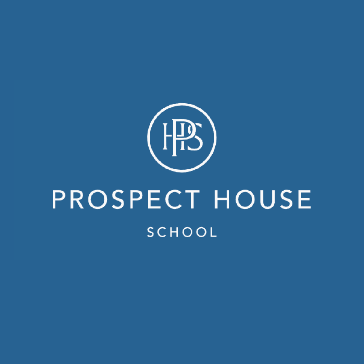 Logo of Prospect House School with initials PHS inside a circle and the school name below on a blue background.